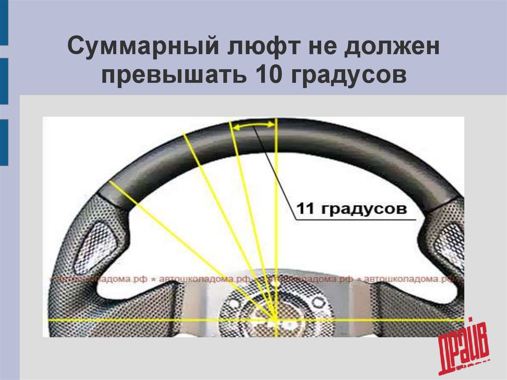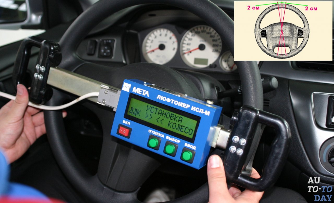 Изобретение относится к способу контроля суммарного люфта в рулевом управлении транспортного средства и устройству для его реализации.