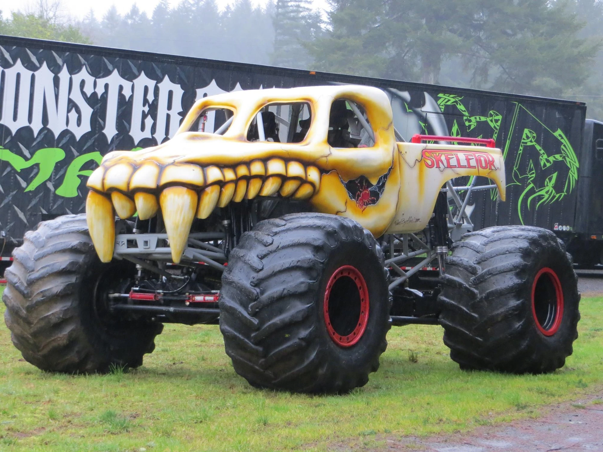 Гигантские шины Goodyear продаются по всему миру и устанавливаются на самосвалы, работающие в карьерах, где добывают уголь, золото, медь и т.д. Внешний диаметр равняется 4,023 метра, что больше допустимой высоты грузовиков в большинстве европейских стран. Баскетбольные кольца находятся на метр ниже. Вес составляет 5,4 тонны, грузоподъемность — 100 тонн, а максимальная скорость — 50 км/ч.