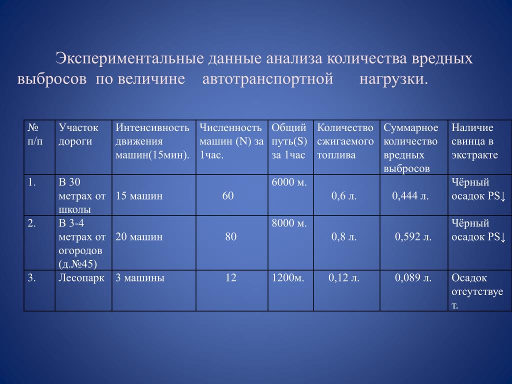 Наибольший выброс продуктов неполного сгорания бензина происходит при задержках машин у светофоров, при стоянке с не-выключенным мотором в ожидании зеленого света, при трогании с места и форсировании работы мотора.