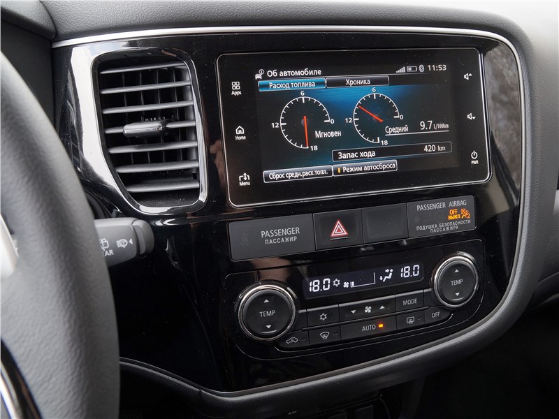 Однако, при низком уровне заряда батареи Mitsubishi Outlander PHEV без помощи двух электромоторов не способен скрыть своей внушительной массы почти 1,9 т силами одной лишь бензиновой 2,5-литровой атмосферной «четвёрки», расположенной под капотом. Наиболее красноречиво об этом говорит средний расход топлива с «севшим» аккумулятором в Риме 11,5 л/100 км (8,7 км/л) и 7 л/100 км (14,2 км/л) в смешанном цикле по городу и за его пределами.