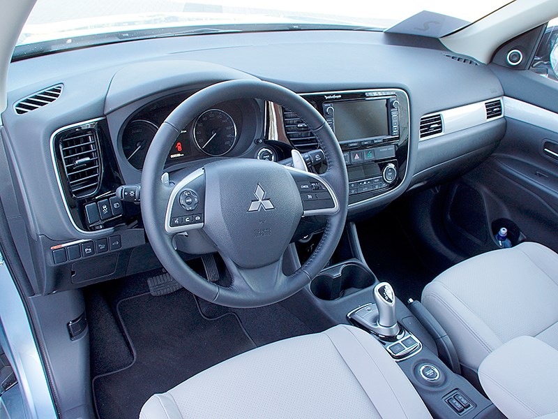 Мотор и коробка тоже едут в таком стиле. При динамичном разгоне автомобиль радует неплохим «живым» стартом с места, но затем – зависание на высокий оборотах, едва заметная попытка вариатора имитировать переключение передачи… Все это под монотонный гул мотора, который не выделяется особой красотой звука и явно проступает на фоне хорошей, в общем-то, звукоизоляции автомобиля. В итоге на кроссовере Mitsubishi Outlander намного приятнее не «валить», а просто ехать: комфортно и мягко, с плавными ускорениями.