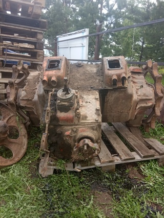 В его фронтальной части размещаются радиаторы (для воды и масла), закрытые специальной шторкой из брезента. В тыльной части двигателя находится силовая передача с главной муфтой сцепления, мощная карданная передача (она же соединительная), задний мост, усилитель крутящего момента, коробка переключения передач. Все это собрано в едином литом корпусе. Рядом находятся зависящий вал отбора мощности с конечными передачами.