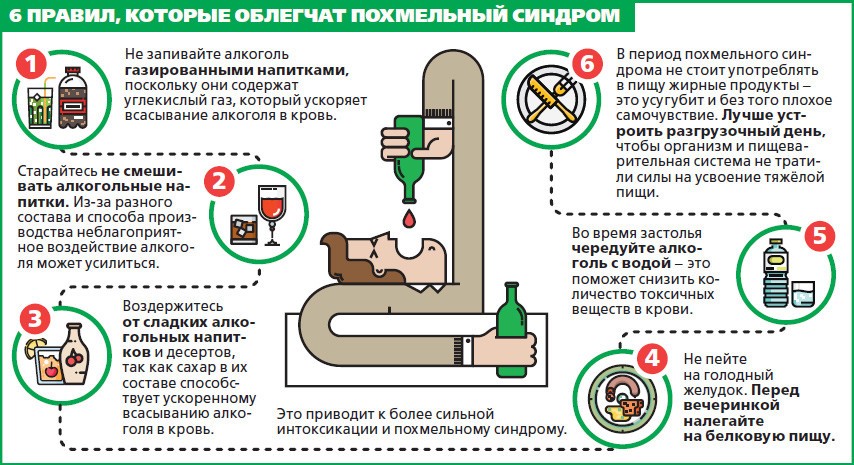 Отмечу, что эти советы могут усилить похмелье. Но это опасно, если вы выпьете много. А раз уж есть что пить, то зачем их использовать? Если Алкоголя мало, то похмелье априори будет минимальным..