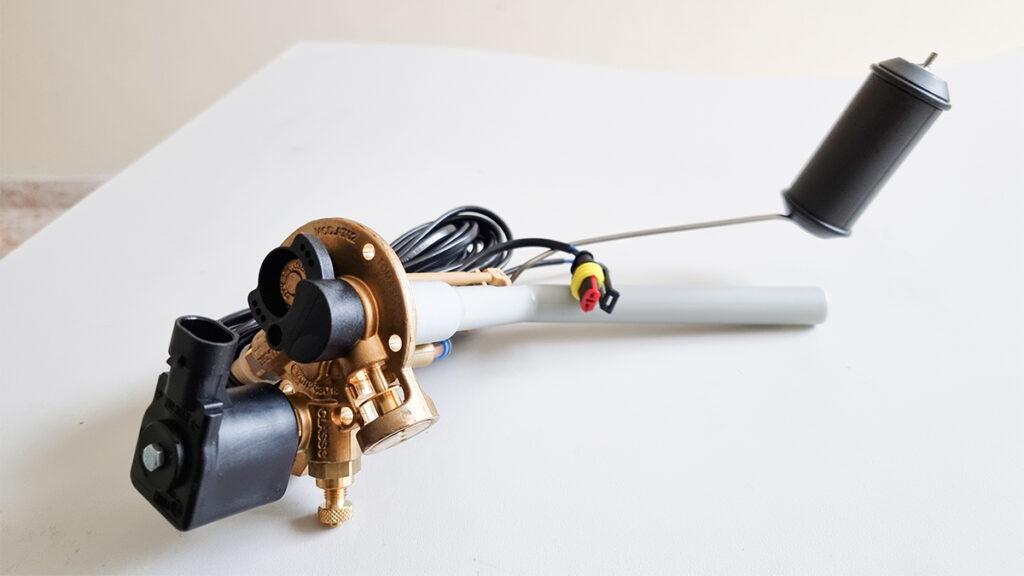 Шток поплавка также соединён с механизмом, который с помощью магнитов меняет положение стрелки указателя уровня газа. С целью контроля объема топлива на баллоне или непосредственно в салоне авто, схему ГБО 4-го поколения дополняют специальным электромеханическим датчиком индикации.