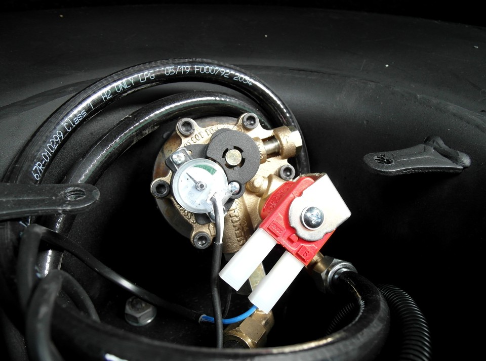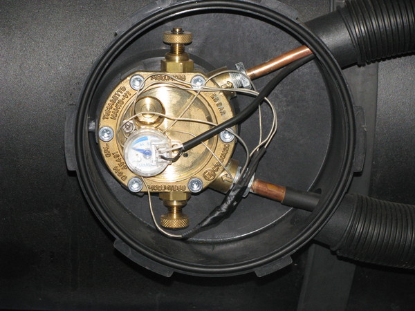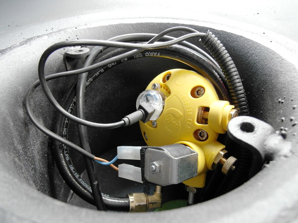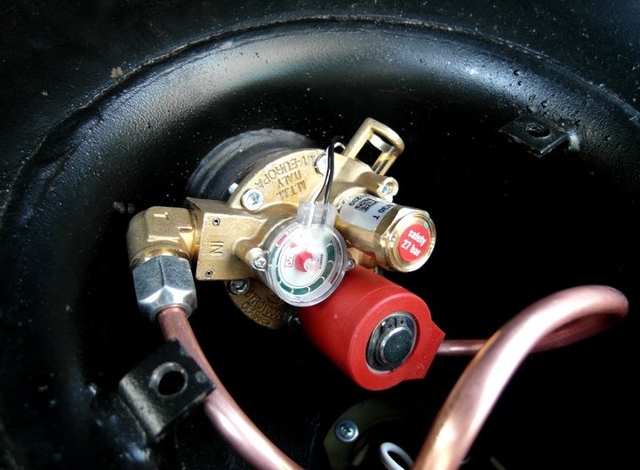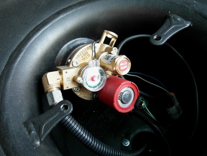 Предохранительный клапан (он же разгрузочный) стравливает избыточное давление газа, которое может появиться, например, из-за перепадов температуры при заезде зимой в теплый бокс или при изменении погодных условий. Механизм настроен на открытие с отметки 2 700 ± 100 кПа, устройство является многоразовым.