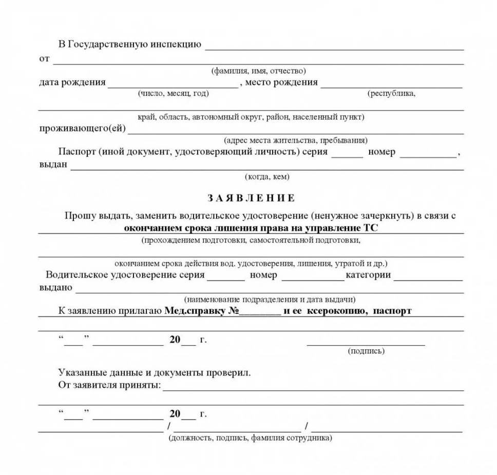 Для подачи заявления из документов необходимо взять с собой только ваш гражданский паспорт. Но на всякий случай можете прихватить копию постановления о лишении прав. Само заявление пишется непосредственно в отделе ГАИ по месту исполнения, где вы и будете сдавать ПДД.