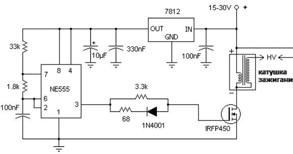 Фото 2: Драйвер катушки насыщает первичную цепь, замыкая цепь на землю.