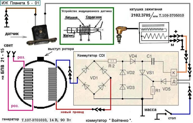 - Выработка импульса высокого напряжения и его отправка по проводам к необходимой свече.