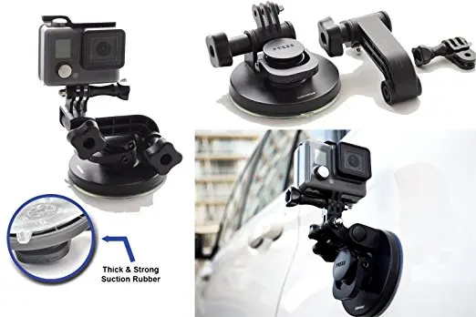 - Идеально подходит для небольших цифровых камер с резьбой 1/4″-20, также совместим с GoPro, так как поставляется с разъемом 1/4 Thread to Action Cam. Диаметр присоски: 6,5 см/2,56 дюйма