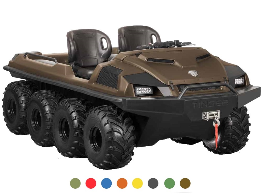 2. Тяжелые вездеходы на подобие армейской техники. Оси нессиметричны (одна спереди, две сзади). Такие модели подойдут для перевозки больших грузов и большого количества пассажиров. Например, их могут использовать организаторы охотничьих туров.