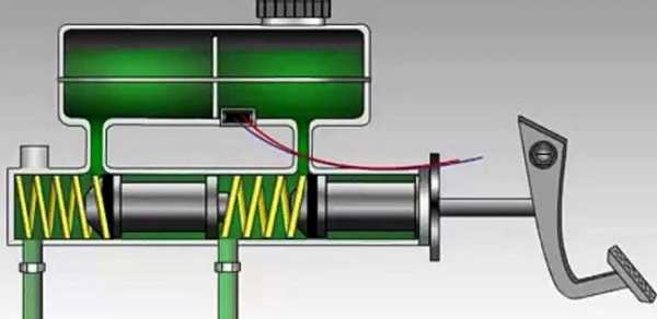 - Когда водитель отпускает педаль, пружины выталкивают поршни обратно, возвращая в первоначальное положение. Жидкость из трубок и бачка снова наполняет цилиндры.
