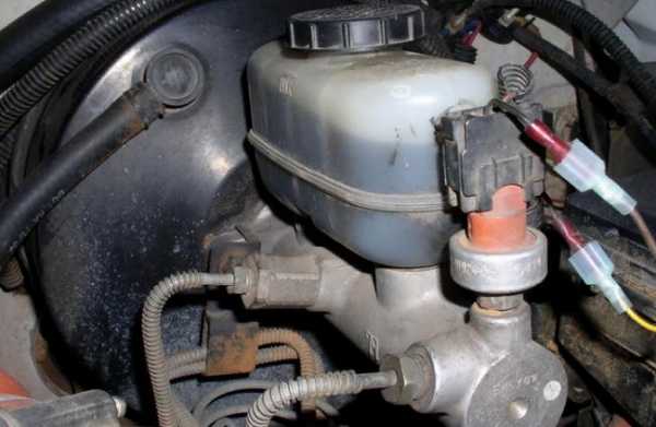 - недостаточный уровень тормозной жидкости в резервуаре главного тормозного цилиндра