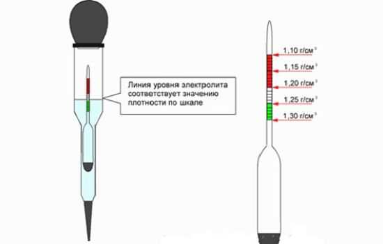 Порядок измерения плотности аккумулятора