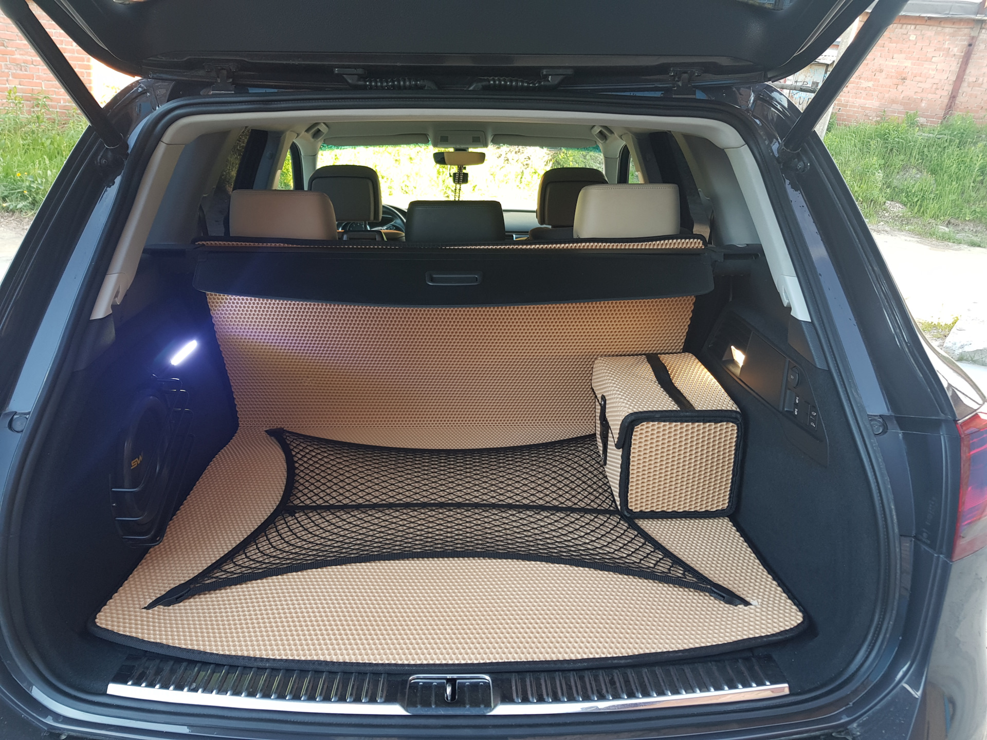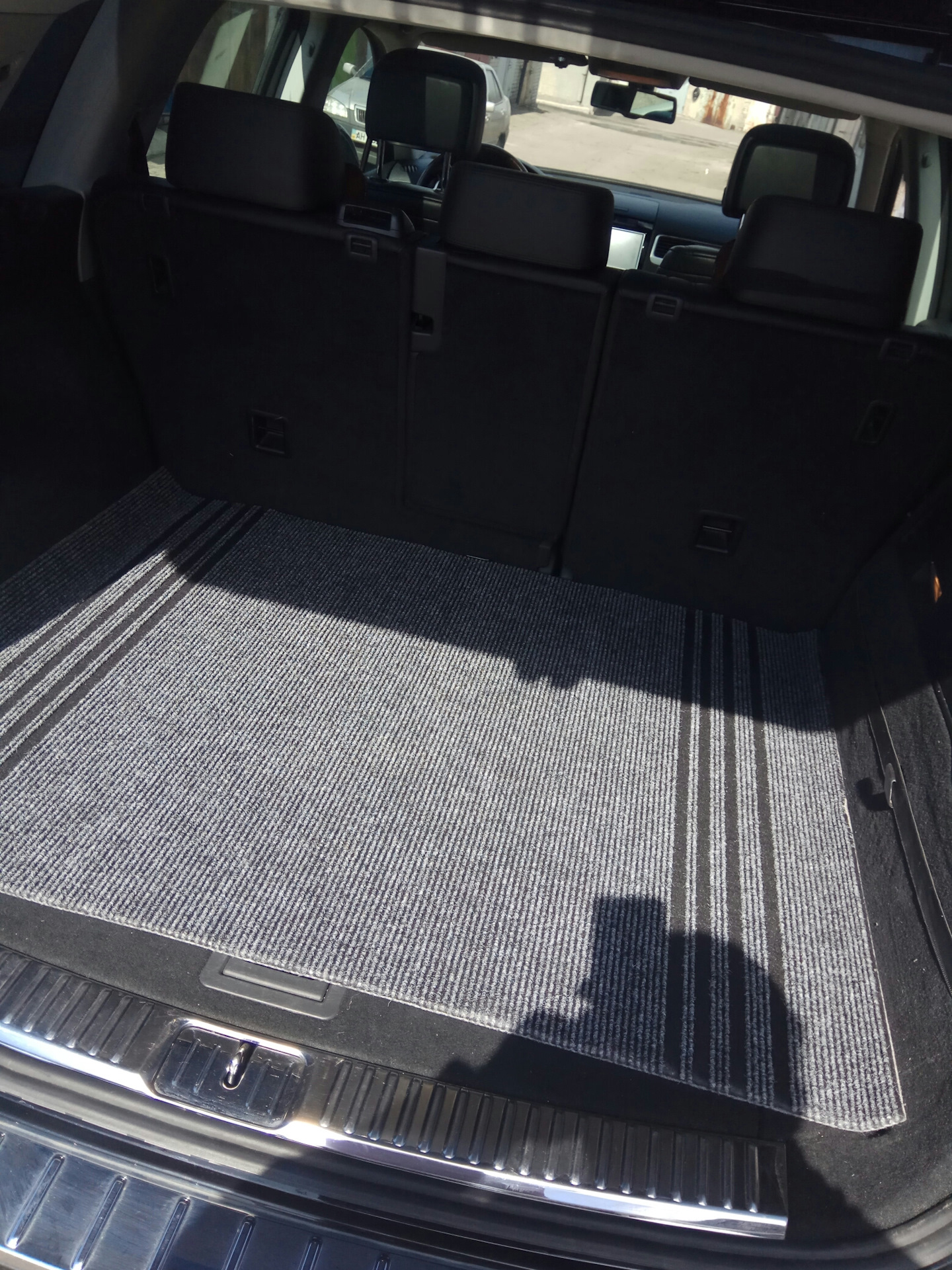 - Поддон для багажника. Легкомоющийся, прочный и долговечный, с бортиками высотой 4 см по всему периметру. По заверению производителя, кислотоустойчив (немцы что, всерьез полагают, что в Туарегах кислоту возить будут?)