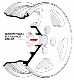 У штатных колес автомобиля центральное отверстие, как правило, точно подогнано к ступице оси; на заводах принято центрировать колесо именно по нему — его диаметр является посадочным. Но если Вы покупаете диск в магазине, не удивляйтесь тому, что центральное отверстие может оказаться больше положенного. Производители дисков часто делают отверстие заведомо увеличенного диаметра и снабжают диск набором переходных колец, что позволяет использовать его на разных моделях автомобилей. Колесо в этом случае центрируют по PCD.