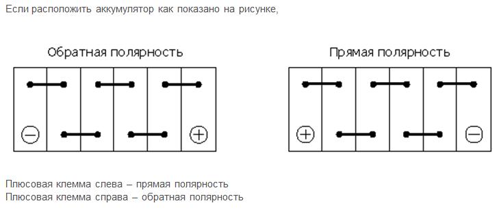 В случае с АКБ речь идёт о прямой и обратной полярности аккумуляторов.