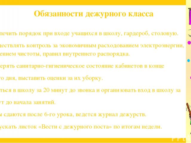4.4. Следит за соблюдением правил внутреннего распорядка.