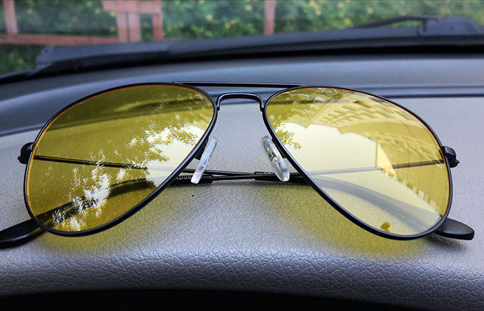 Как и очки для ночного вождения, солнцезащитные очки, в том числе с зеркальными линзами, уменьшают количество света, попадающего в глаза. Это делает их неуместными и потенциально опасными для ночного вождения.