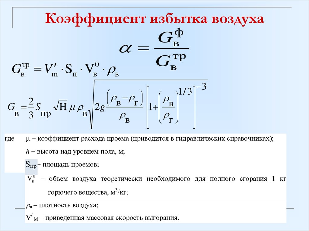 Избыточное количество воздуха, подаваемого на горение, связано с объемом кислорода, не вступившим в реакцию, соотношением