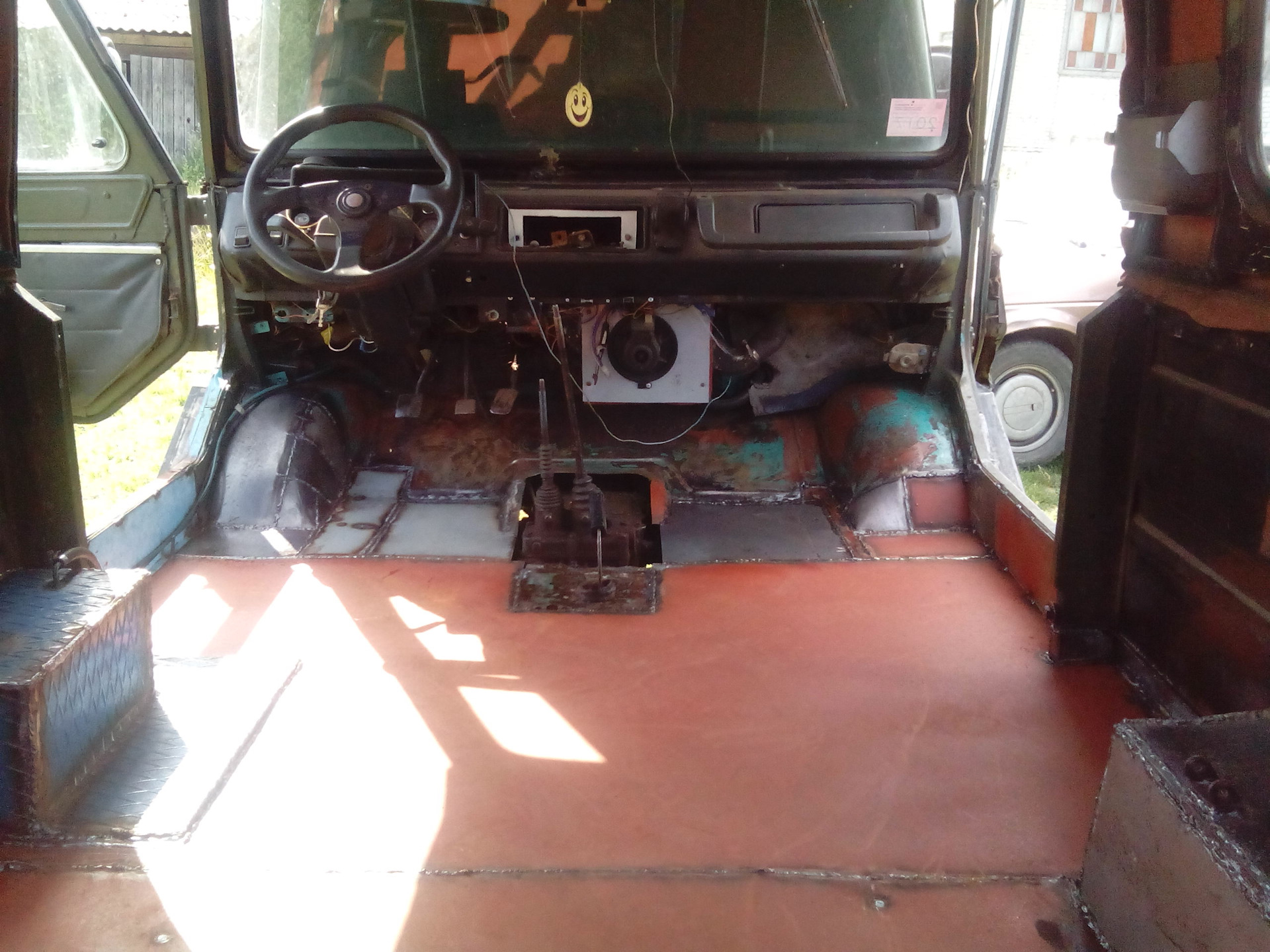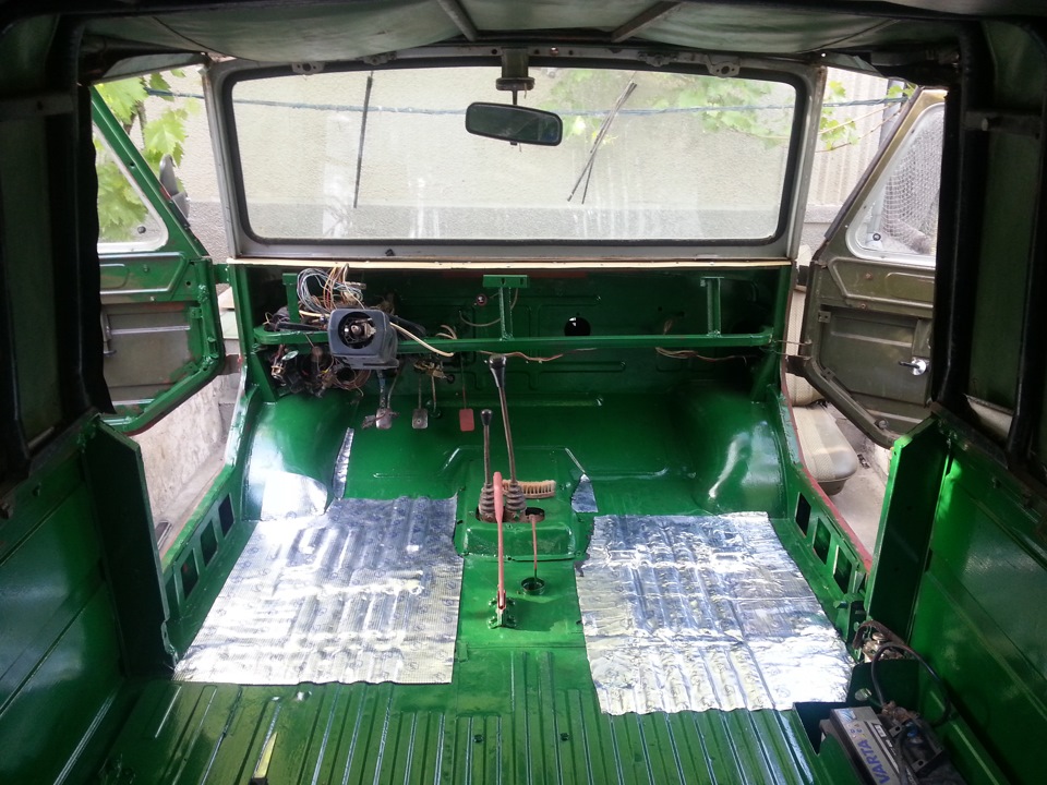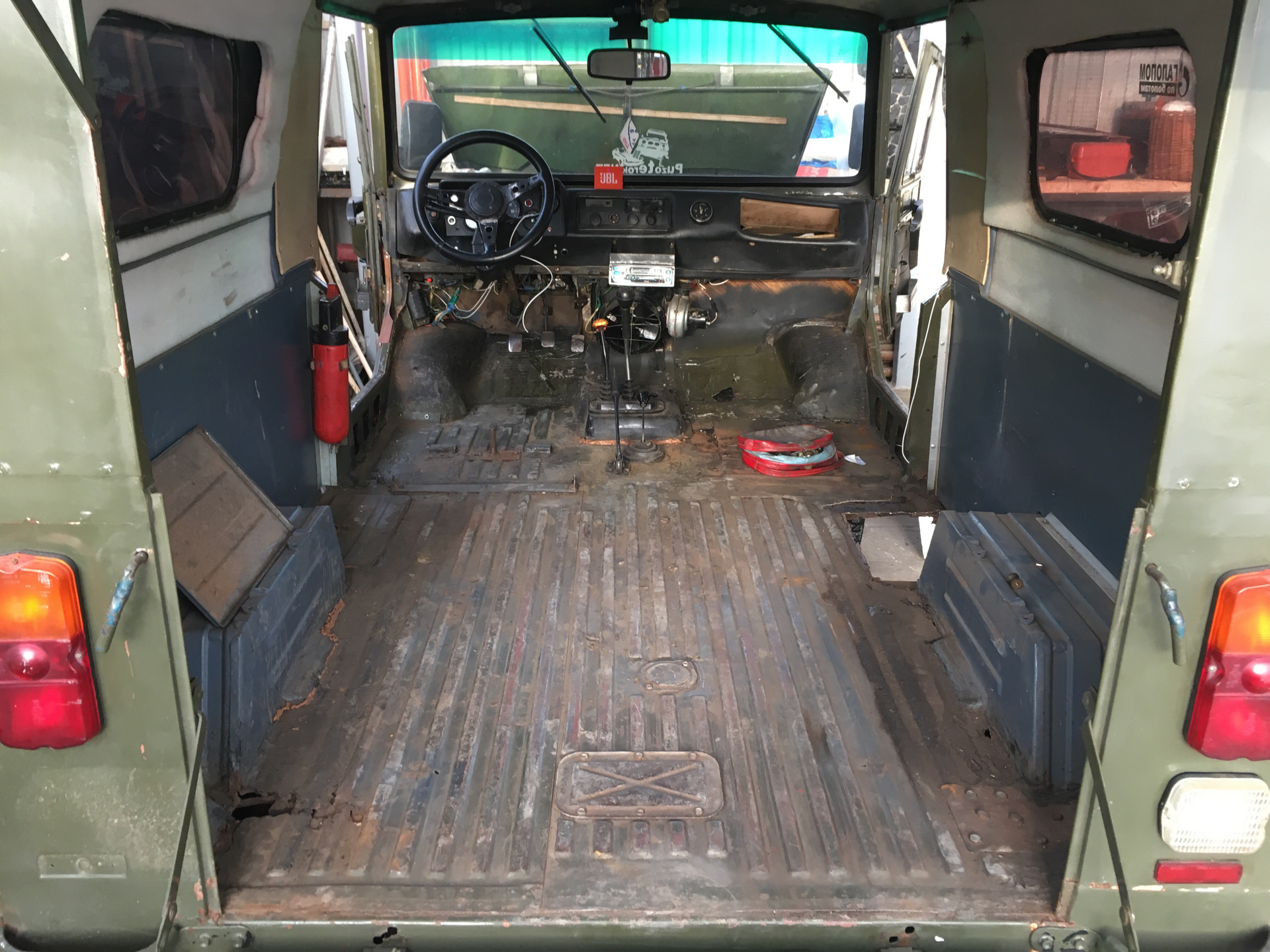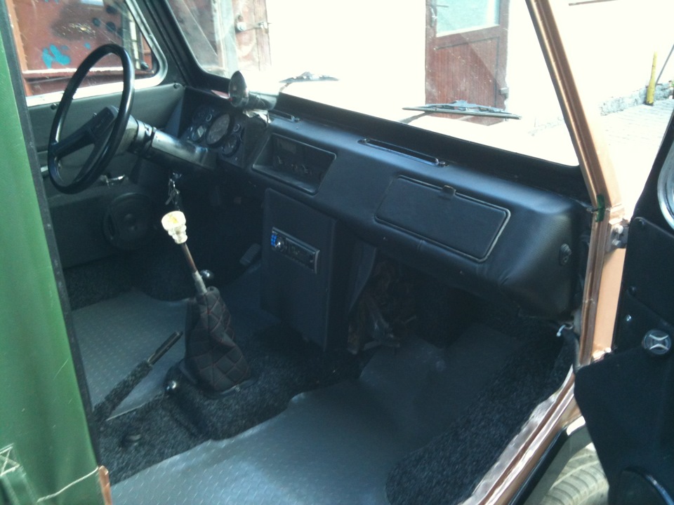 Стандартная для армейских машин приборная панель приобрела более гражданский вид и стала более приятной визуально.Некоторые неудобства возникают из-за сидений, особенно задних сидений. Очень часто владельцы транспортных средств решают поменять обивку дверей и потолочное покрытие. Служит для снижения шума. При модернизации автомобиля в нем стали: