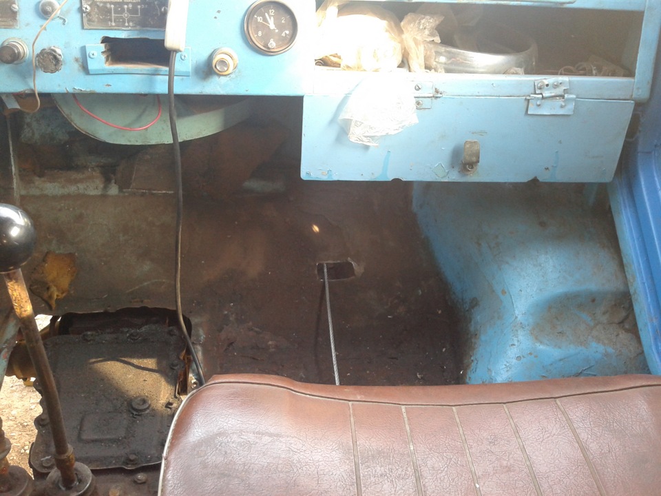 Сиденье внедорожника позаимствовано у ЗАЗ. Среди датчиков и устройств можно найти амперметр, показывающий напряжение в сети. Кстати, для водителя отображается и температура трансмиссионного масла. Отделка интерьера, мягко говоря, оставляет желать лучшего. Все очень просто и в стиле ретро. Автомобиль явно создавался не для городского движения, а в основном для езды по бездорожью, а значит, и для деревни.