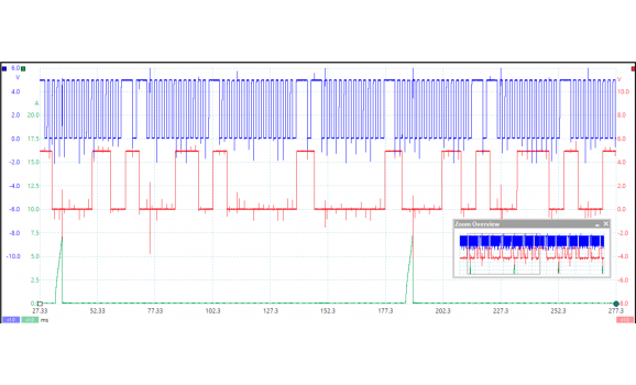 На рис. 3 показана осциллограмма датчика распредвала двигателя при прокручивании коленчатого вала. Этот сигнал можно загрузить и использовать для правильной настройки лабораторного объема или в качестве эталонного сигнала.