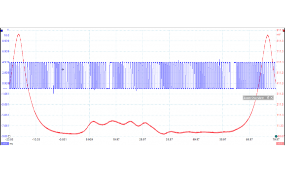 Время: Коленчатый вал должен повернуться дважды, чтобы получить один оборот распределительного вала. Это означает, что 720 градусов вращения коленчатого вала равны 360 градусам вращения распределительного вала. Вам потребуется как минимум три оборота коленчатого вала, чтобы сравнить соотношение с распределительным валом (-ами). Настройте шкалу времени так, чтобы на экране отображалось не менее трех оборотов коленчатого вала.