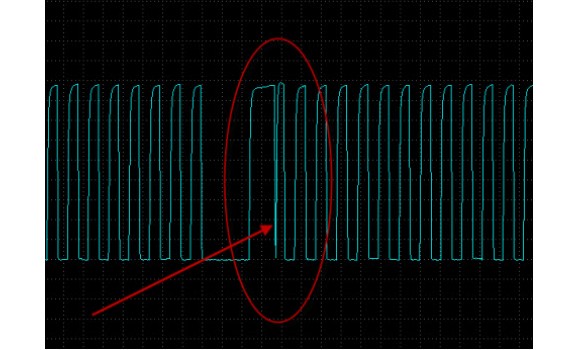 Также, если кольцо на коленчатом валу находится в передней части двигателя, оно может быть повреждено мусором, который может треснуть или сбить зубья. Это легко увидеть на форме волны.