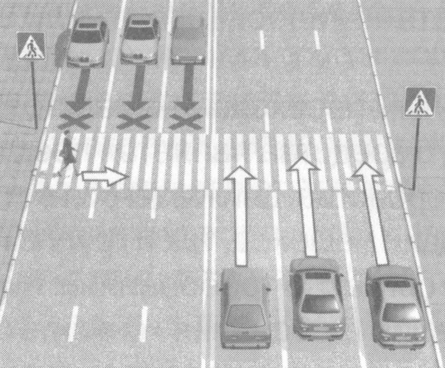 (Определены ограничения местными властями и транспортным секретарем на обозначенных пешеходных переходах)