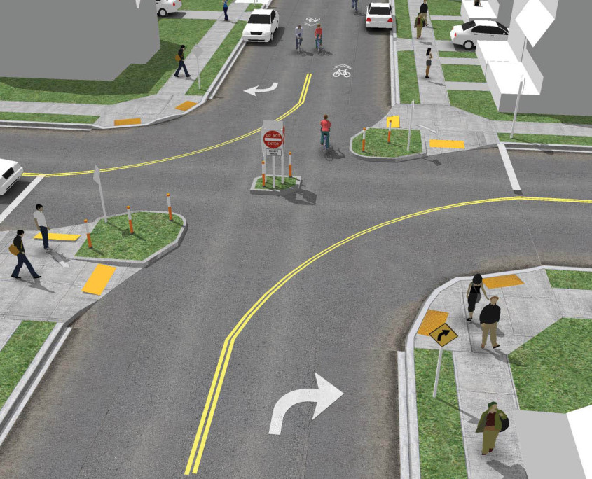 (d) Пешеходы не должны пересекать перекресток проезжей части по диагонали, если это не разрешено официальными устройствами управления движением; и, когда пешеходам разрешен переход по диагонали, пешеходы должны переходить только в соответствии с официальными устройствами управления движением, относящимися к такому переходу.