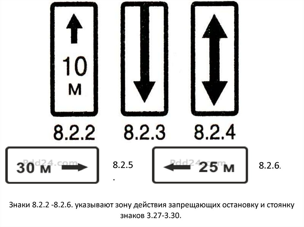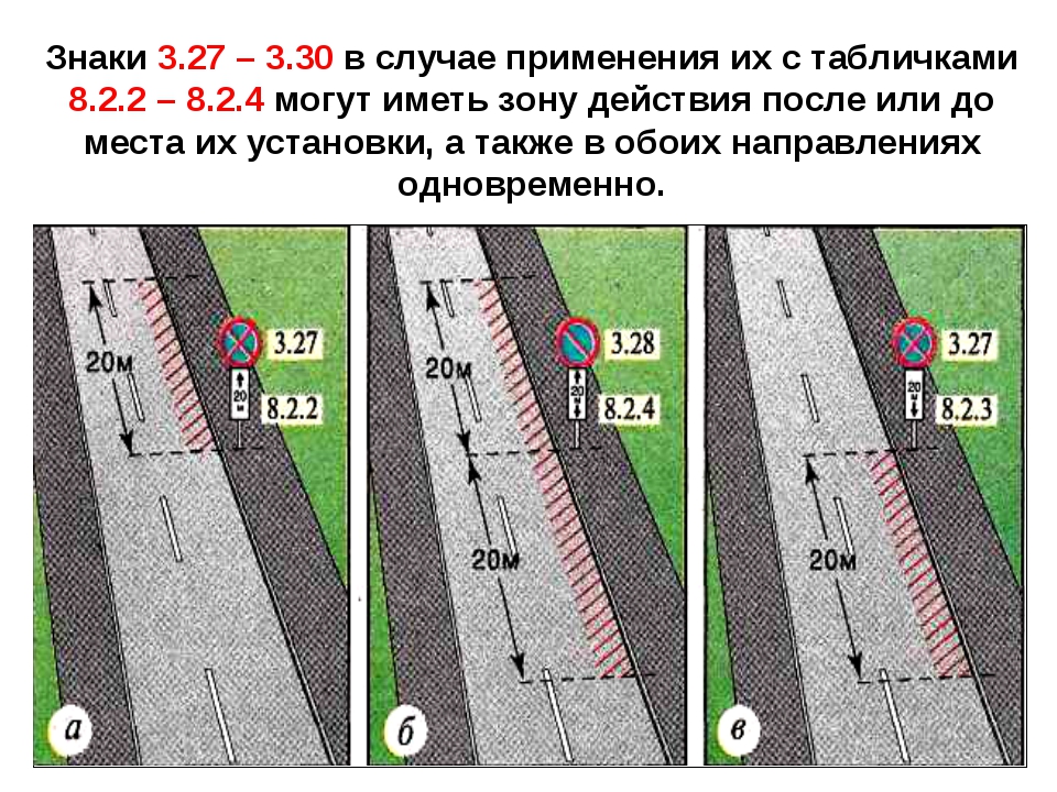 5.9.6 Таблички 8.2.2-8.2.6 «Зона действия» применяют только со знаками 3.27-3.30: