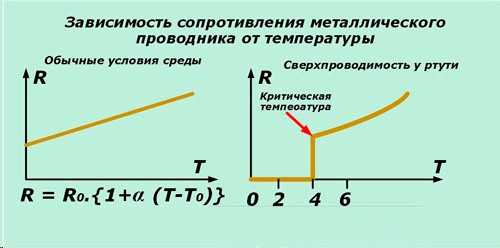 Обычно увеличение температуры ведёт к увеличению резистивной составляющей металлического элемента. С физической точки зрения это связано с тем, что при увеличении температуры кристаллической решётки ионы в ней выходят из состояния покоя и начинают производить колебательные движения. Данный процесс замедляет электроны, т.к. столкновения между ними происходят чаще.