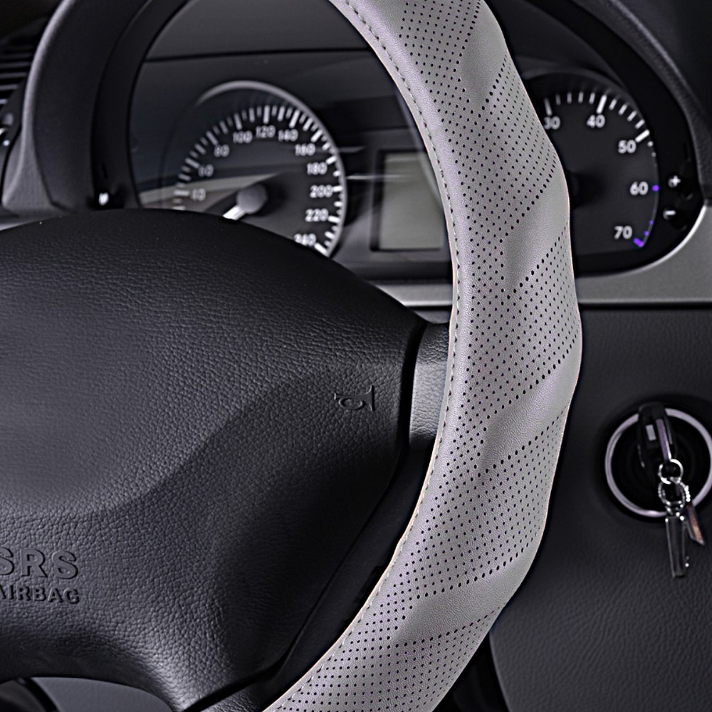 Кожаный чехол на руль из микрофибры SEG Direct — один из самых спортивных вариантов в нашем списке с привлекательным двухцветным дизайном, который прекрасно дополняет интерьер большинства автомобилей.
