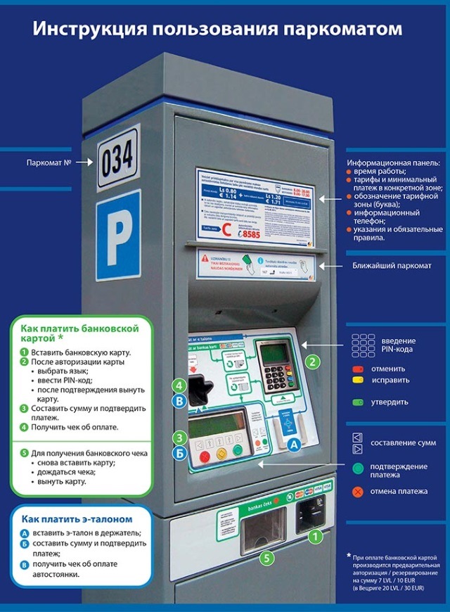 Во время пользования паркоматом обратите внимание на саму конструкцию терминала на паркомате должна находиться вспомогательная инструкция, которая поможет вам разобраться в его работе.