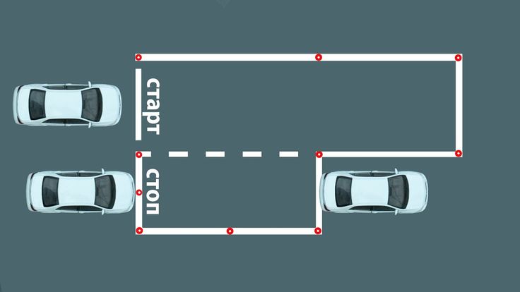 Этот тип парковки, часто называемый кошмаром всех блондинок, действительно является технически самым сложным. Здесь необходимо учитывать все — положение бровки, расстояние между припаркованными авто, длину вашего транспортного средства. Начнем с расстояния между припаркованными машинами. Если вы новичок, оно должно равняться минимум двум длинам вашего автомобиля. В последующем также стоит выбирать места для стоянки, имеющие именно такой размер. Если расстояние меньше — всегда есть риск зацепить заднюю машину (особенно если в вашем авто ограничена обзорность). Так как сейчас вы только тренируетесь поставьте фишки (или то, что их заменяет) на указанном расстоянии.