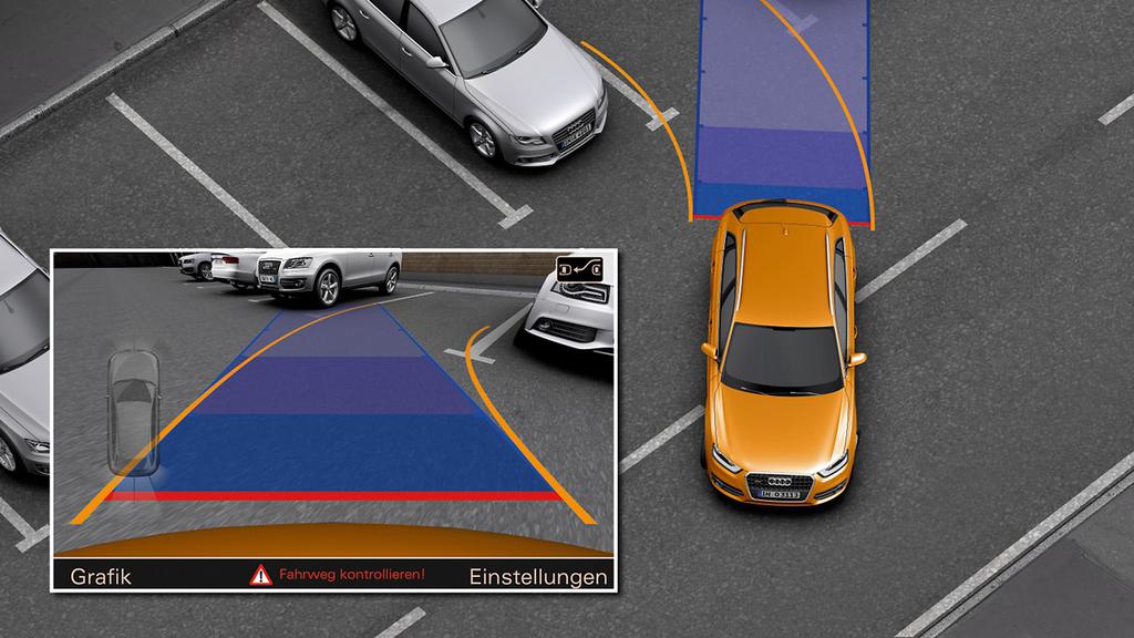 Внутреннее пространство для автомобилей премиум-класса с динамической транспортной камерой и парковщиком. Fahrerassistenzsystem zum Einparken.