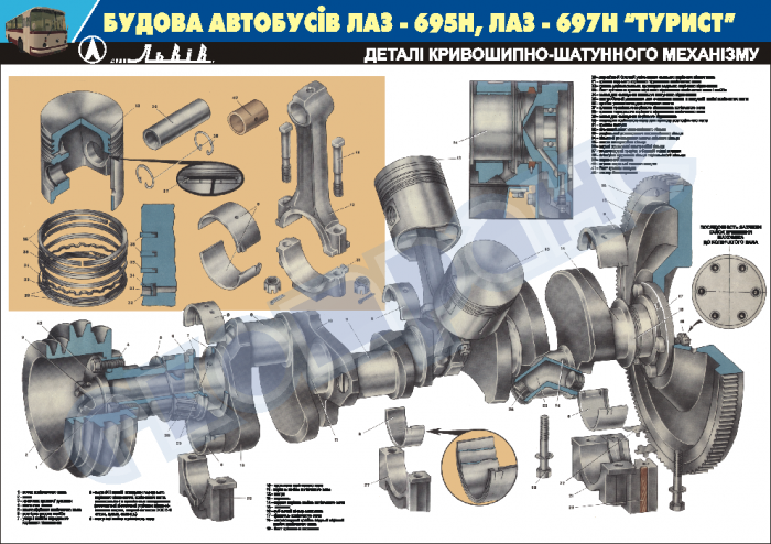 В поршне, кроме днища, имеется уплотняющая часть (головка) и направляющая часть (юбка). На боковых стенках внутри масла к поверхности поршневого пальца. Стержень шатуна имеет двутавровое сечение.