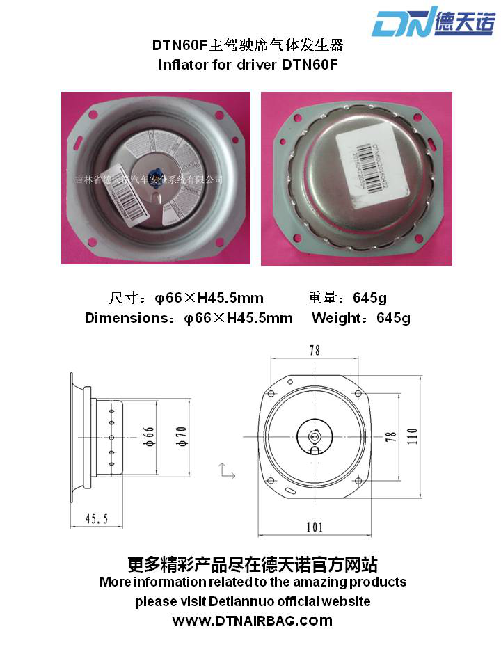 Пиропатрон ( Газогенератор ) в руль airbag 60мм ( маленький ) двухзапальный восстановление безопасности авто