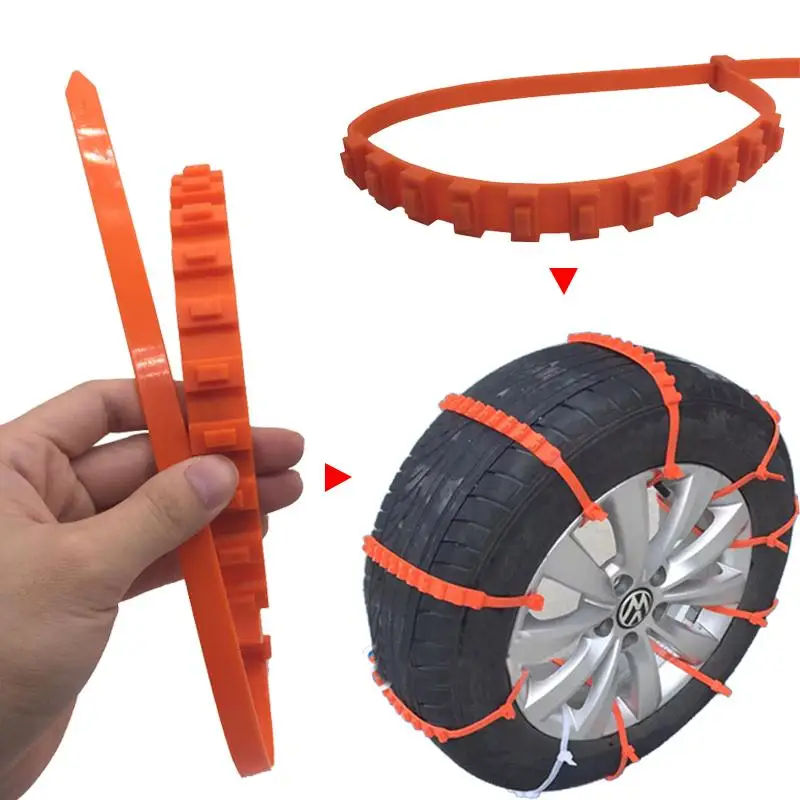 Пластиковые цепи противоскольжения — это более новая версия цепей противоскольжения, которые становятся доступными для новых автомобилей. Они, как правило, изнашиваются быстрее, но в целом работают так же, как металлические цепи, и бывают разных моделей.
