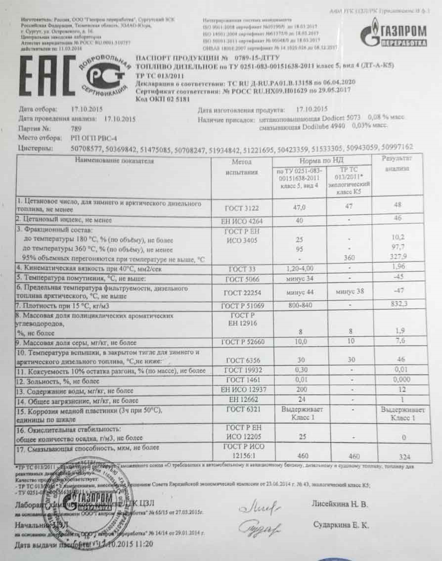 Физические свойства видов дизельного топлива регламентируются упомянутым выше ГОСТ 305-82.