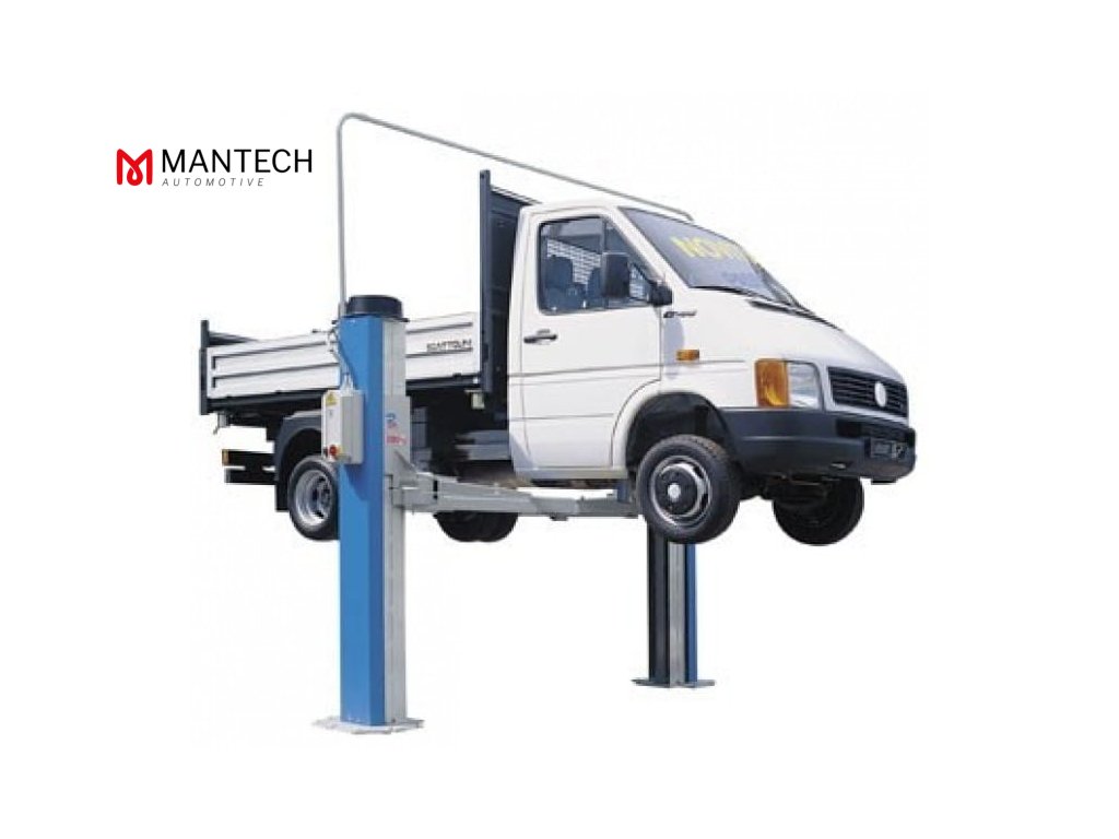Также есть подъемники четырехстоечные, у которых стойки не соединены между собой, каждая из них оснащена гидронасосной станцией и платформой под колесо. Подвижные платформы стоек легко подгоняются под колеса автомобиля, и подъем осуществляется каждой платформы по отдельности или всех сразу. В основном, такие подъемники четырехстоечные используются для обслуживания грузовых автомобилей.