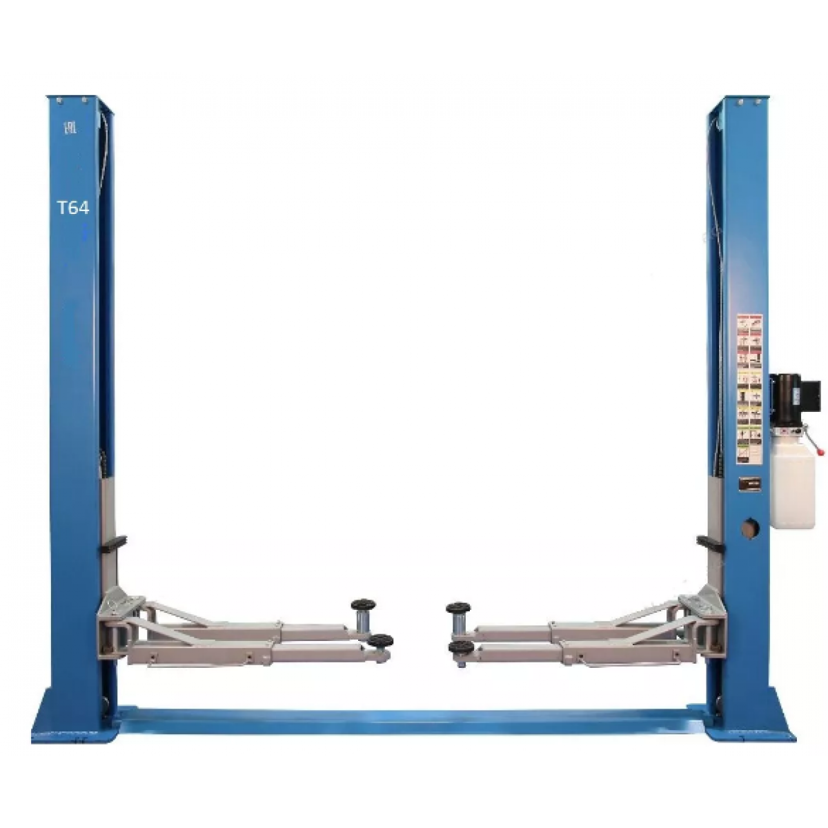Строение подъемника автомобильного двухстоечного достаточно простое: это две вертикальные стойки, соединенные прочной металлической рамой (внутри нее протянут трос синхронизации и шланг с рабочей жидкостью). На каждой стойке закреплены лапы (рычаги) для подъема автомобиля. Так как в стойках установлены гидроцилиндры, приводимые в действие электрогидравлическим насосом, двухстоечный подъемник требует подключения к электросети.