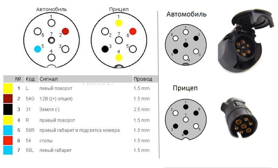 Существует две основных разновидности розеток грузовых прицепов, которые различаются количеством контактов:
