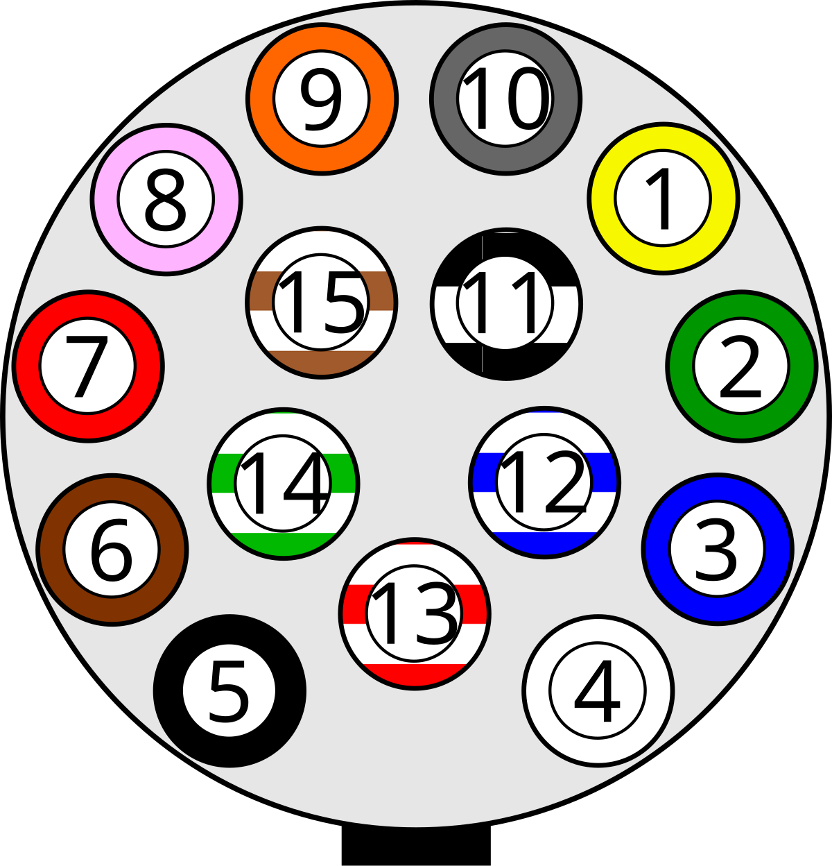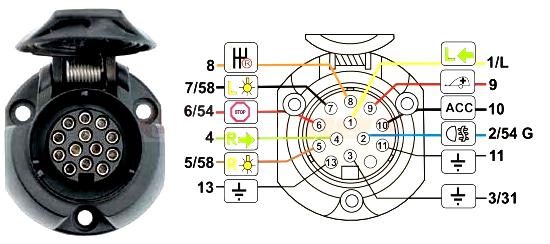 На них предусмотрено 15 контактов для подключения. Такая розетка используется если нужно передать дополнительные функции от тягача к прицепу или полуприцепу