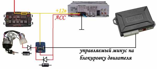 ΠΠ»Π°Π²Π½ΠΎΠ΅ β Π½Π°ΠΉΡΠΈ 3 ΠΊΠΎΠ½ΡΠ°ΠΊΡΠ°: GND, +12 ΠΈ ACC. ΠΠΎ ΡΡΡΠΈ, GND (ΠΌΠ°ΡΡΠ°) β ΠΌΠΈΠ½ΡΡΠΎΠ²ΠΎΠΉ ΠΏΡΠΎΠ²ΠΎΠ΄ ΠΎΡ Π°ΠΊΠΊΡΠΌΡΠ»ΡΡΠΎΡΠ°. ΠΠ³ΠΎ ΠΌΠΎΠΆΠ½ΠΎ ΡΠΎΠ΅Π΄ΠΈΠ½ΠΈΡΡ Π½Π°ΠΏΡΡΠΌΡΡ ΠΊ Π°ΠΊΠΊΡΠΌΡΠ»ΡΡΠΎΡΡ Π±Π΅Π· ΠΏΡΠΈΠ²Π»Π΅ΡΠ΅Π½ΠΈΡ ΠΊΠ°ΠΊΠΈΡ -Π»ΠΈΠ±ΠΎ Π²ΡΠΊΠ»ΡΡΠ°ΡΠ΅Π»Π΅ΠΉ ΠΈ ΠΏΡΠ΅Π΄ΠΎΡ ΡΠ°Π½ΠΈΡΠ΅Π»Π΅ΠΉ. ΠΠΈΠ½ΠΈΡ +12 Π²ΠΎΠ»ΡΡ ΡΠΆΠ΅ ΡΡΠ΅Π±ΡΠ΅Ρ Π·Π°ΡΠΈΡΡ Ρ ΠΏΠΎΠΌΠΎΡΡΡ ΠΏΡΠΎΠ²ΠΎΠ»ΠΎΡΠ½ΠΎΠ³ΠΎ ΠΏΡΠ΅Π΄ΠΎΡ ΡΠ°Π½ΠΈΡΠ΅Π»Ρ. Π’Π°ΠΊΠΆΠ΅ ΠΌΠΎΠΆΠ½ΠΎ Π²ΡΡΡΠ΅ΡΠΈΡΡ Π΄ΡΡΠ³ΠΈΠ΅ ΠΎΠ±ΠΎΠ·Π½Π°ΡΠ΅Π½ΠΈΡ Π»ΠΈΠ½ΠΈΠΈ +12: B+, BU, Batt. ΠΠΈΠ½ΠΈΡ ACC Π΄ΠΎΠ»ΠΆΠ½Π° ΠΏΠΎΠ΄ΠΊΠ»ΡΡΠ°ΡΡΡΡ ΠΊ ΠΏΠ»ΡΡΠΎΠ²ΠΎΠΉ ΠΊΠ»Π΅ΠΌΠΌΠ΅ Π°ΠΊΠΊΡΠΌΡΠ»ΡΡΠΎΡΠ° ΠΈ ΠΈΡΠΊΠ»ΡΡΠΈΡΠ΅Π»ΡΠ½ΠΎ ΡΠ΅ΡΠ΅Π· ΠΊΠΎΠ½ΡΠ°ΠΊΡΡ Π·Π°ΠΌΠΊΠ° Π·Π°ΠΆΠΈΠ³Π°Π½ΠΈΡ. Π‘ΠΎΠ΅Π΄ΠΈΠ½Π΅Π½ΠΈΠ΅ Π»ΠΈΠ½ΠΈΠΉ +12 ΠΈ AAC Π½Π°ΠΊΠΎΡΠΎΡΠΊΠΎ Π½Π΅ΠΆΠ΅Π»Π°ΡΠ΅Π»ΡΠ½ΠΎ, ΡΠ°ΠΊ ΠΊΠ°ΠΊ Π²ΠΎΠ·Π½ΠΈΠΊΠ°Π΅Ρ ΠΎΠΏΠ°ΡΠ½ΠΎΡΡΡ ΡΠΈΠ»ΡΠ½ΠΎΠ³ΠΎ ΡΠ°Π·ΡΡΠ΄Π° ΠΈ ΠΈΠ·Π½ΠΎΡΠ° Π°ΠΊΠΊΡΠΌΡΠ»ΡΡΠΎΡΠ°.