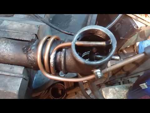 В противоположный конец тройника вворачивается набольшая труба длинной 10-15 см, необходимая для того, чтобы в полученной камере, охлаждающая жидкость быстрей и лучше нагревалась.