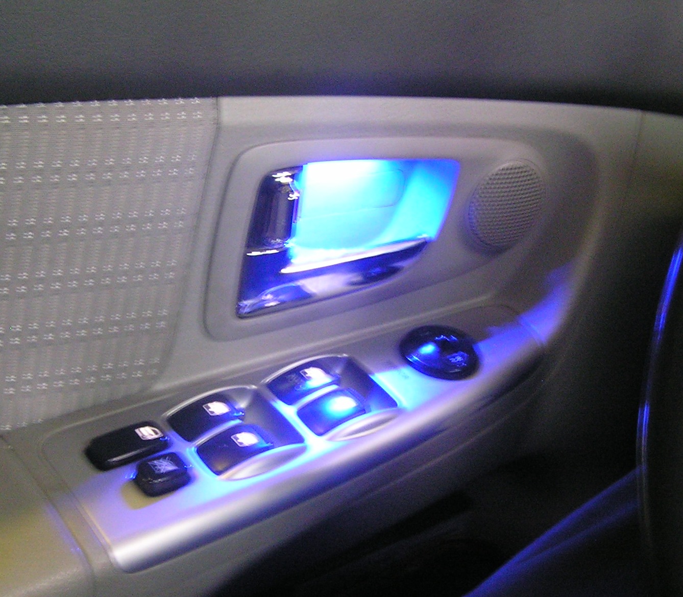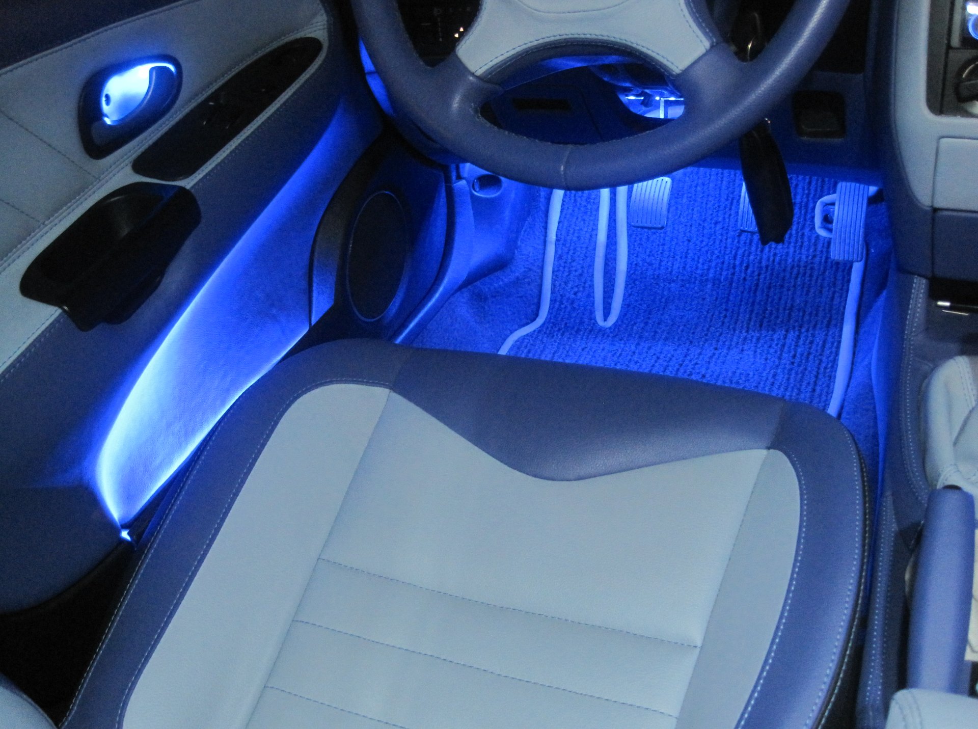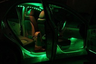 Интересно, что освещение заднего сидения наиболее продуктивно. Это касается аксессуаров и отдельных деталей, в том числе ручек открывания дверей. Подсветка салона автомобиля как декор, будет эффективно смотреться на решётках воздуховодов и/или по всему периметру дверей. Можно комбинировать направленный свет, или его отдельные элементы, используя для этого прикуриватель или другую электрическую бортовую сеть.