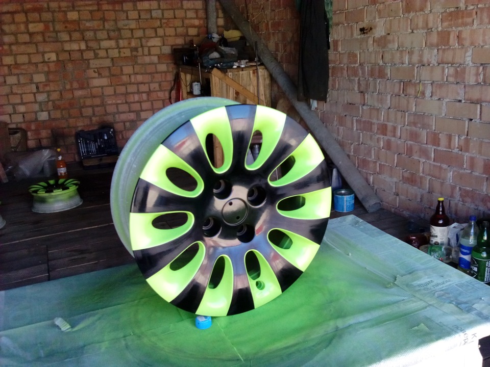 Процесс покраски колесных дисков светящейся краской состоит из нескольких простых этапов: