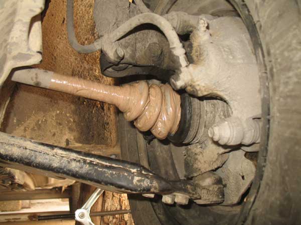 Внимательно осмотрите каждую ось CV. На каждой оси установлено по два пыльника ШРУСа — внешний и внутренний. Визуально осмотрите резину на наличие трещин, утечек или других повреждений.