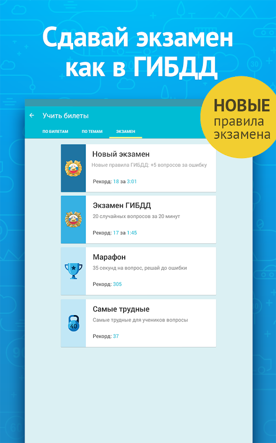 Теоретический экзамен, как и сегодня, будет сдаваться путем решения электронных билетов, только количество вопросов в них увеличится в 2,5 раза – с 20 до 50. Связан это с тем, что в текущих тестах недостаточно полно отражен блок безопасного управления. Также будут включены вопросы, касающиеся устройства транспортного средства, законодательства РФ, медицинской помощи, а также планируется добавить задачи по основам психологии.
